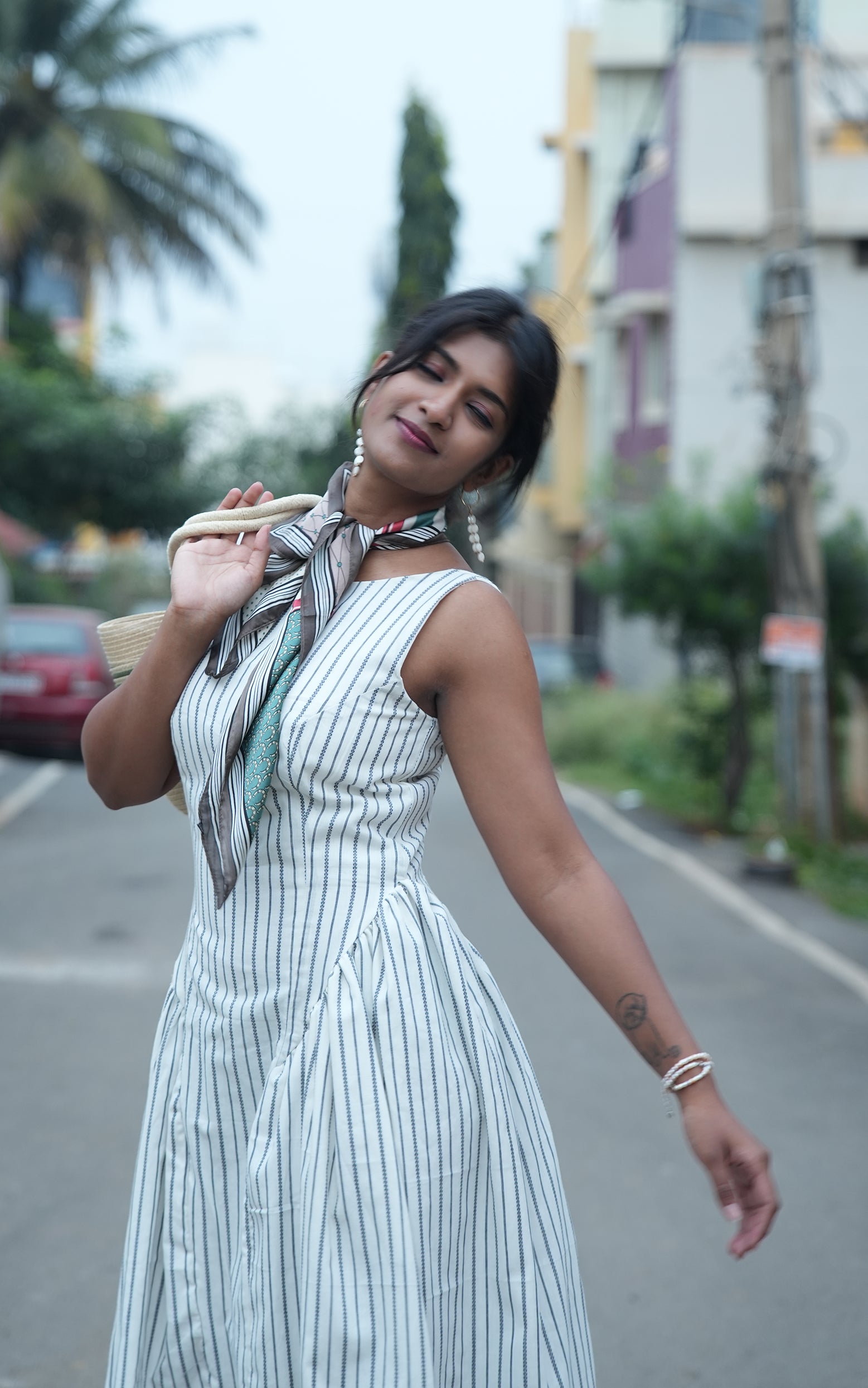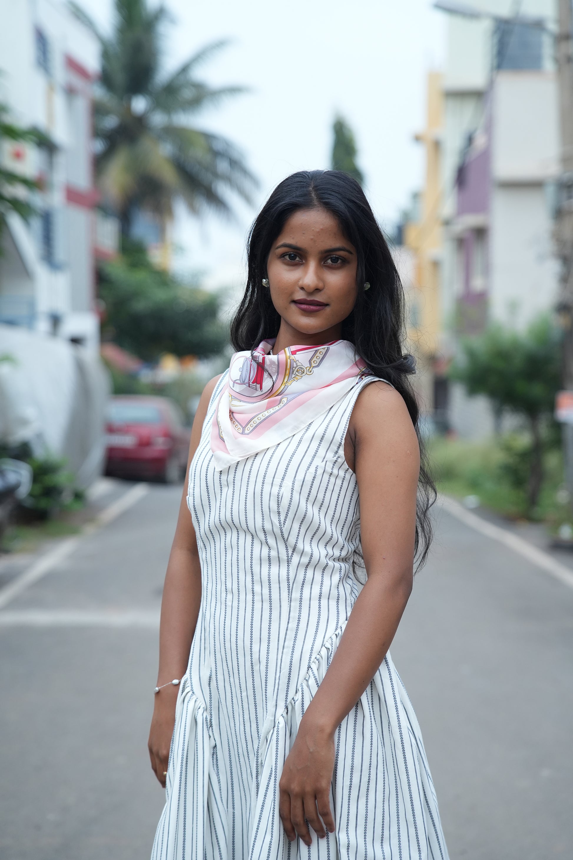 • Layer with a soft scarf, denim jacket, or lightweight cardigan