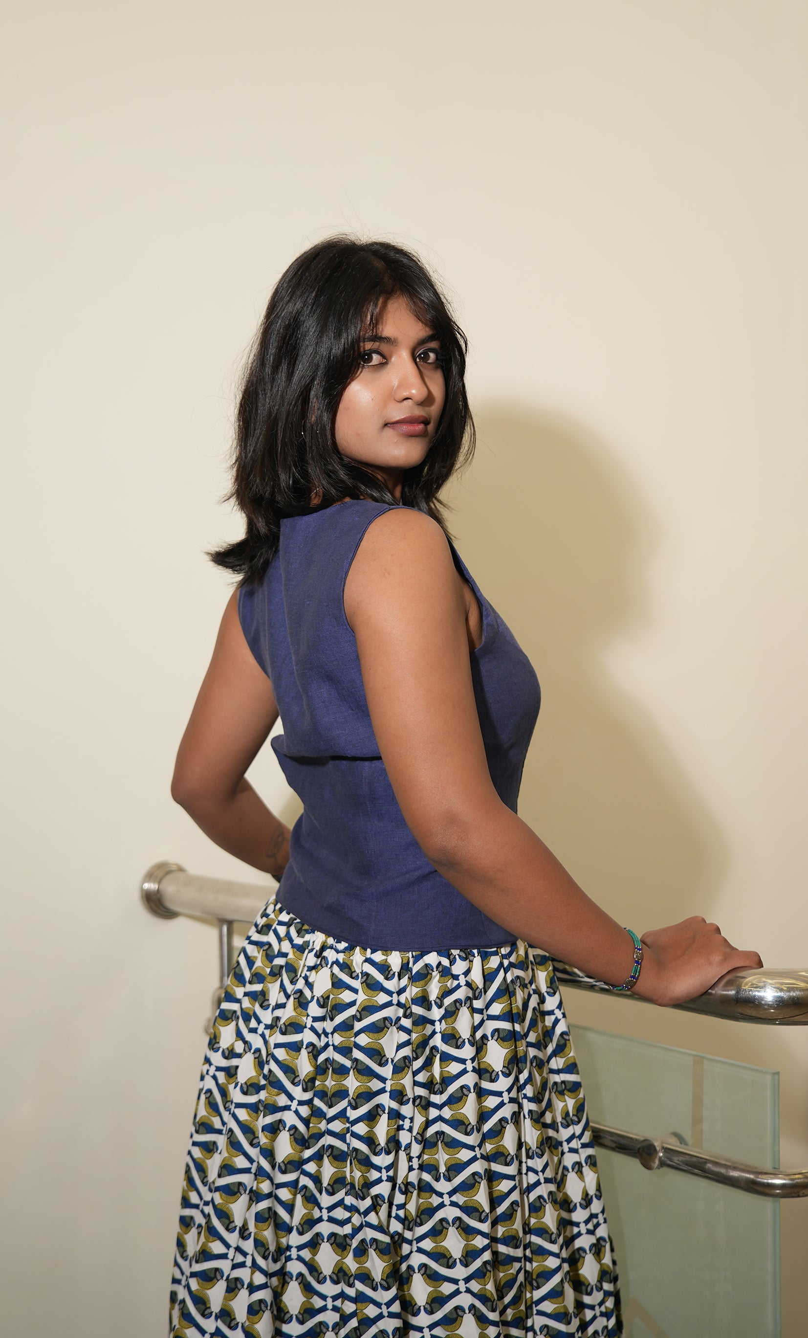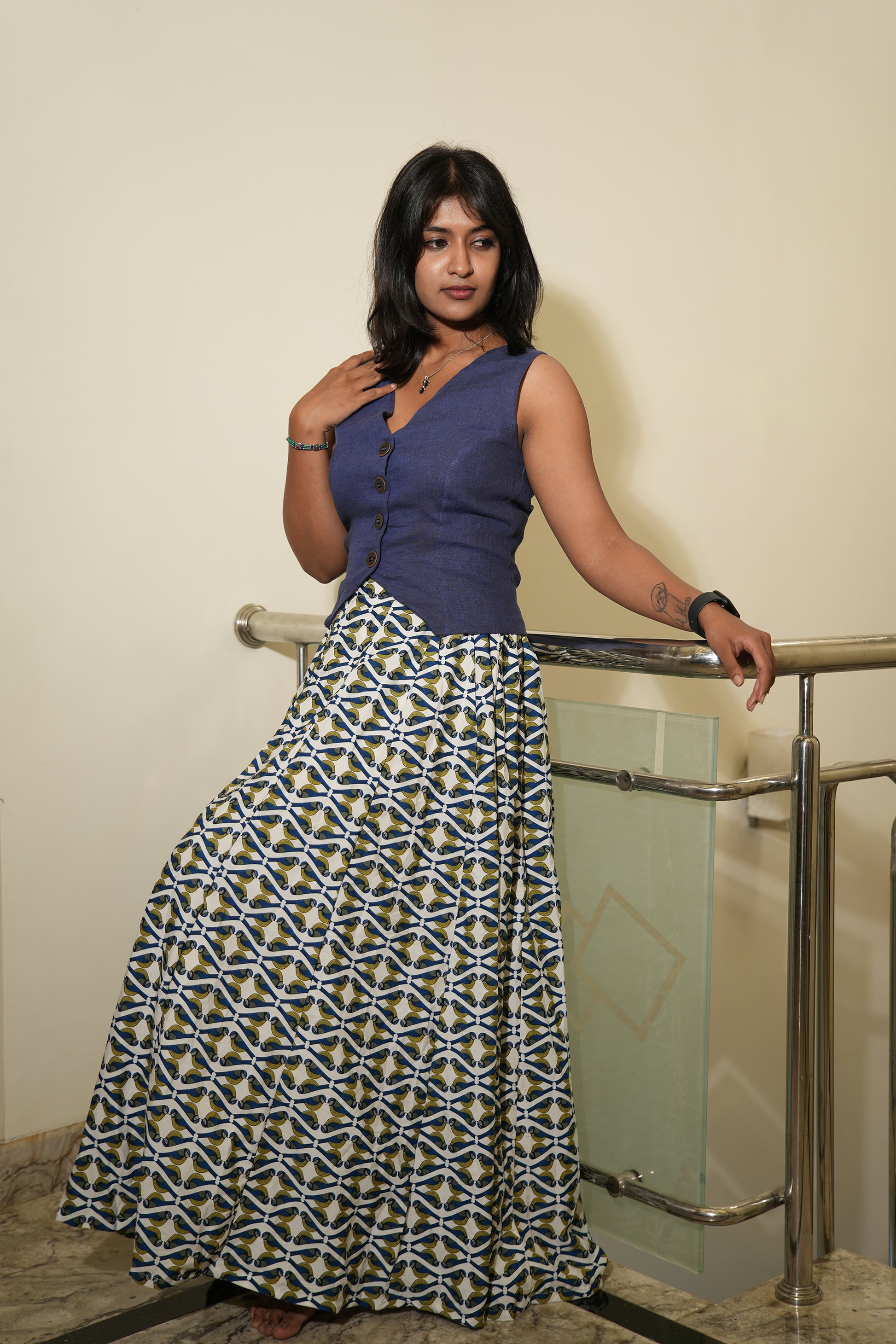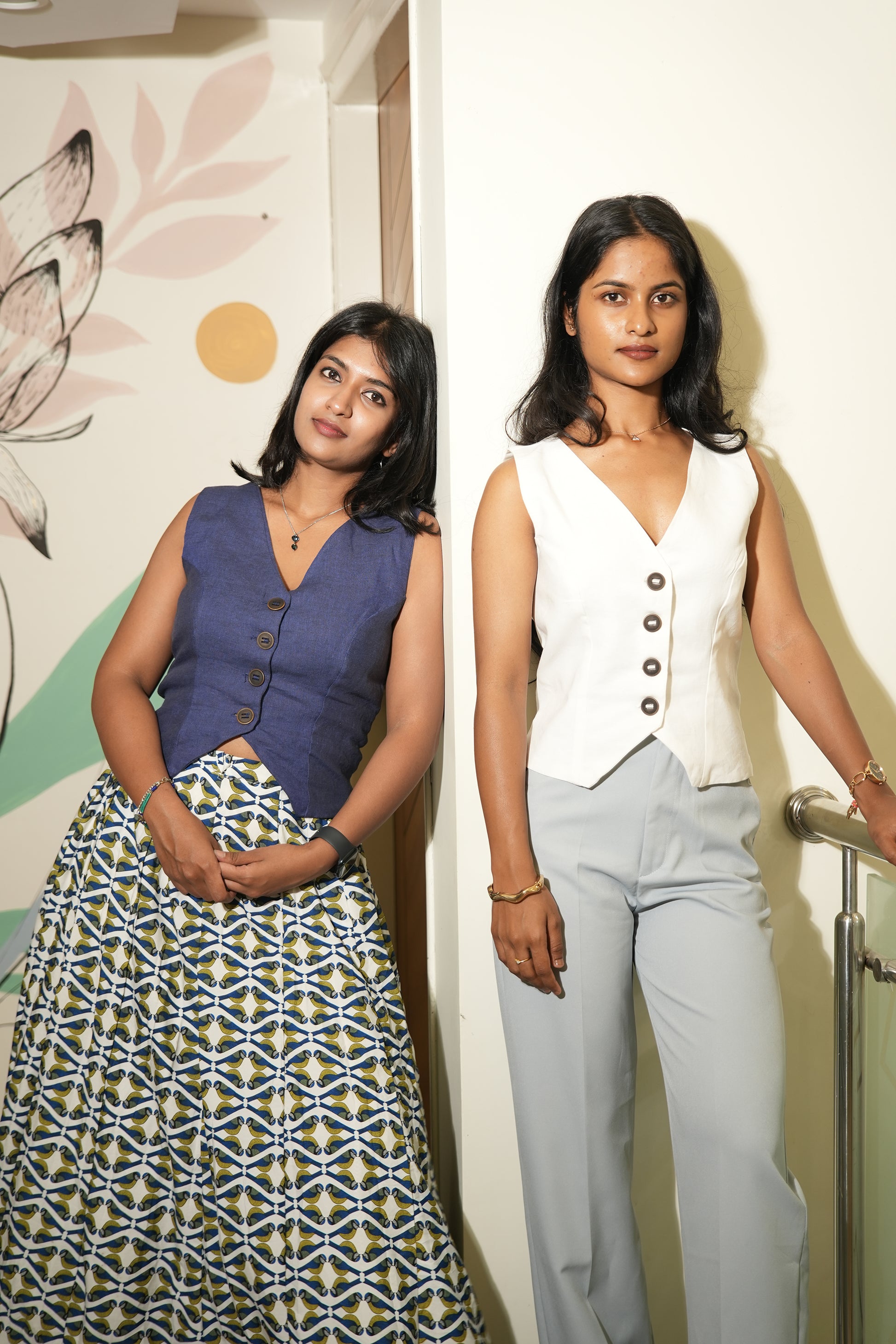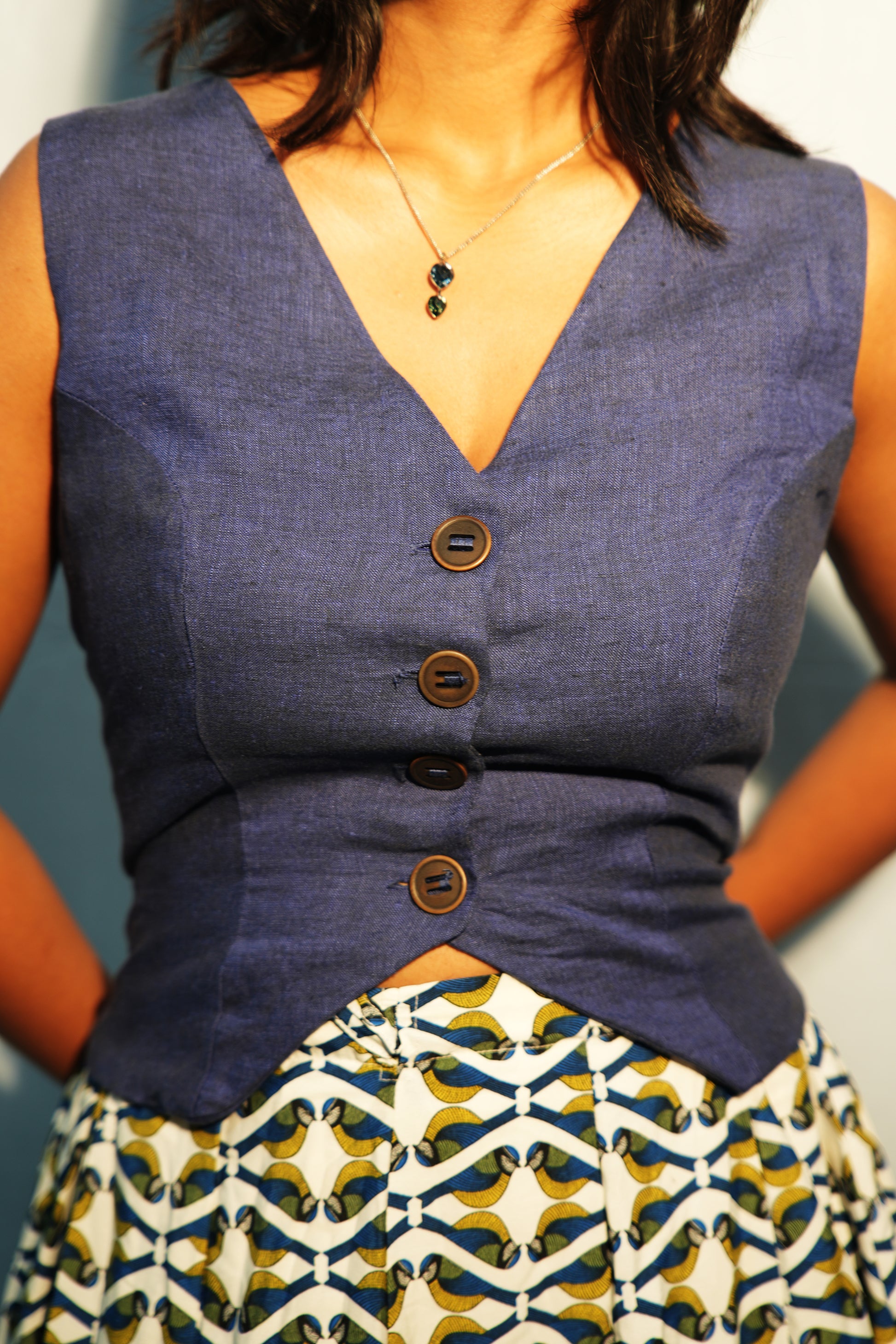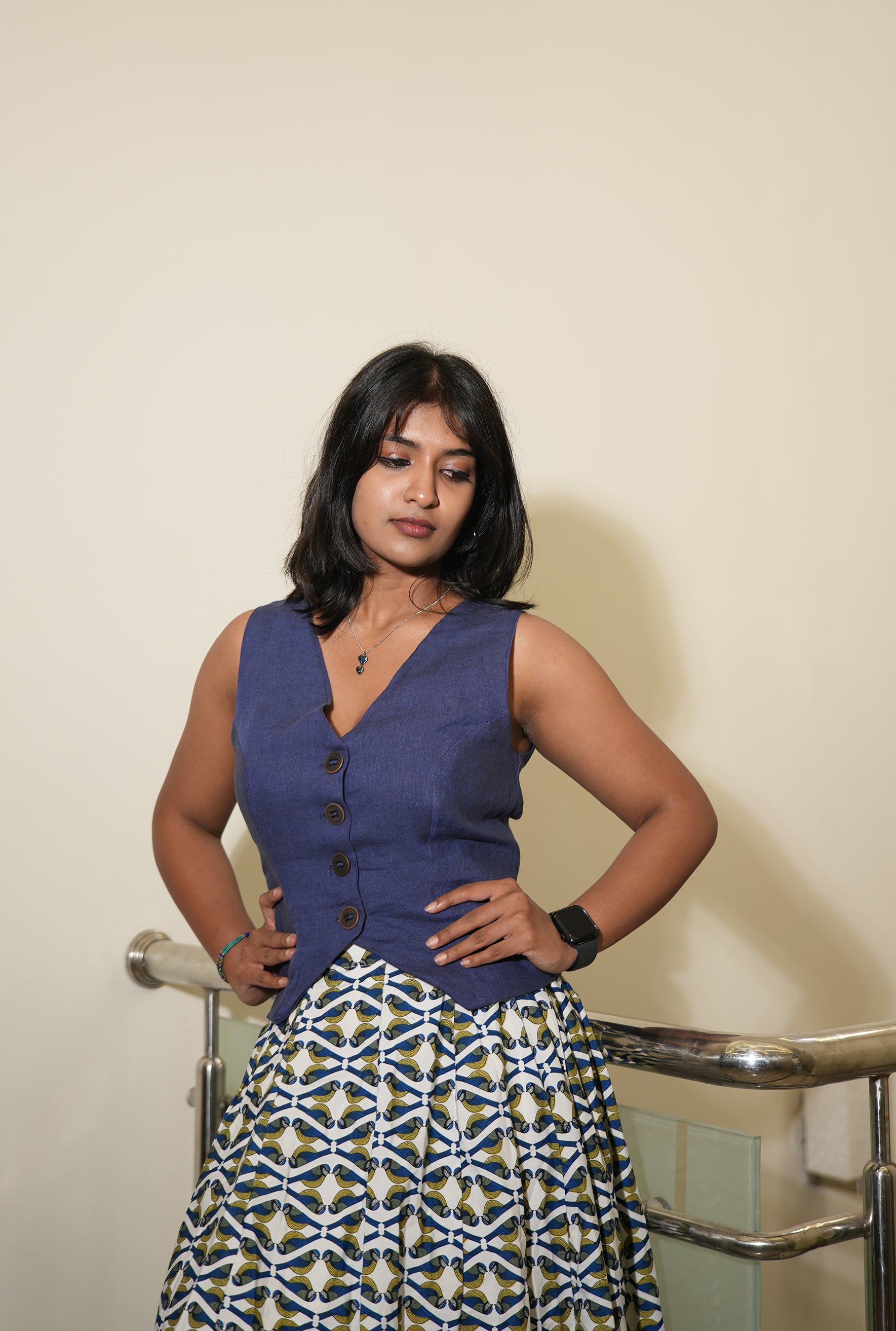 WOVEN MOONLIGHT BUTTONED VEST - LINEN - BLUE